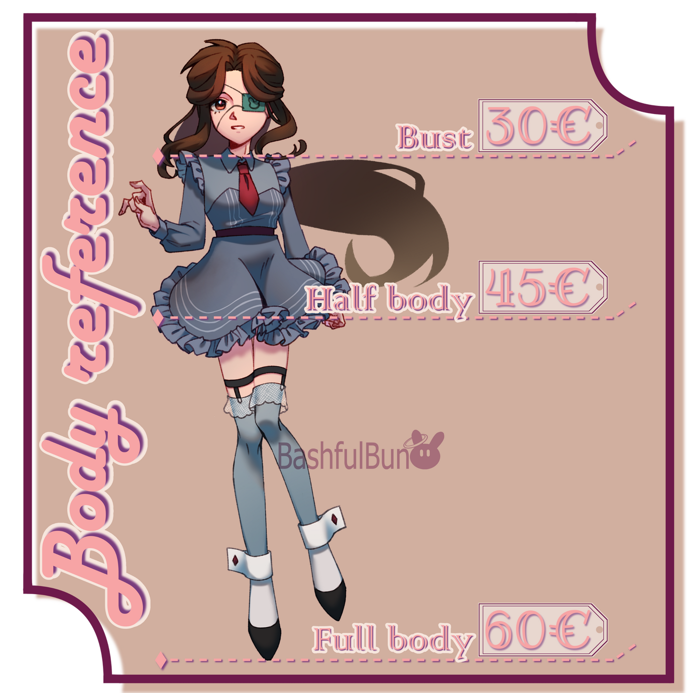 ◆ How it works:You explain your idea to me with a reference image of your character(s). If I have to draw your character by description alone, I will charge a further 5€, though I do accept accommodations.Before I start work, I will ask for a deposit of 5€ for chibis, 10€ for the rest and 20€ if your commission is over 100€.I will send a sketch, to confirm you are happy with the direction, and you can amend this as much as necessary. Once satisfied, I will then ask for half the price of the commission, minus the deposit you have already paid. You are still able to make amendments until your commission is complete.When you're completely satisfied with the final piece, I will ask for the remaining cost of the commission before sending you the final high resolution file.